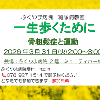 【3/31(火)14:00~15:00】糖尿病教室「一生歩くために 骨粗鬆症と運動」開催のお知らせ